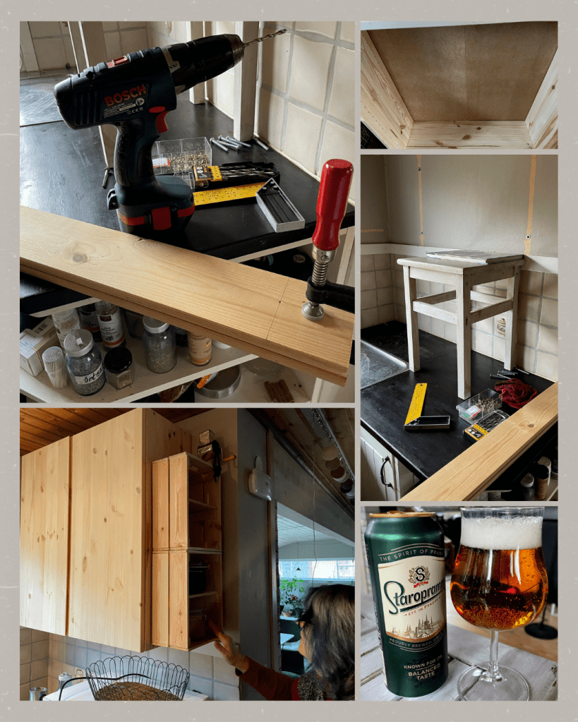 Efter frukost fick vi äntligen loss tummarna, och skruvade upp ett skåp, som vi köpte på Ikea i början av november förra året. Behovet har funnits länge, men arbetet har prioriterats ner hela tiden. Eftersom det dessutom handlade om lite felköp, krävdes en egna patentlösningar för att överhuvudtaget kunna få det på plats. Men nu är det uppe!