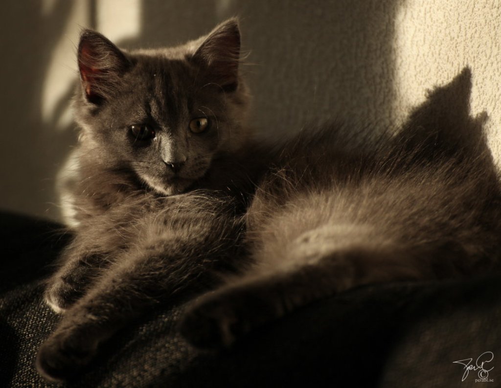 Fick tillfälle att träffa och fotografera en tretton veckor bedĂĄrande kattunge av rasen sibirisk katt – Zeus! Det blev första gĂĄngen för min del att fĂĄ uppleva denna ras. Och eftersom han finns inom ”familjen” fĂĄr jag möjlighet att följa utvecklingen av honom.