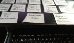För att kunna komma vidare i skrivandet, och för att få ordning på redan skrivna avsnitt lägger jag pussel. Har skrivit en lapp för varje avsnitt det gäller och ska sortera dem i den ordning de ska komma i berättelsen. Hoppas bara jag kan läsa min egen handstil. Inte helt lätt att skriva med handen i gips!