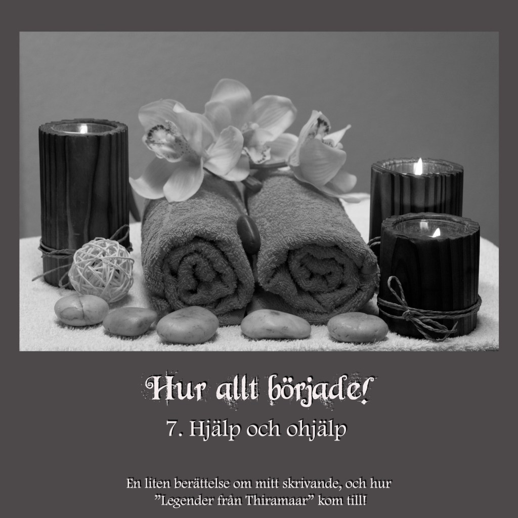 Att ha hjälp av andra när man skriver är värdefullt. Precis som i livet i övrigt är det värdefullt att ha någon att bollplanka synpunkter med. För min del har jag den absolut bästa tänkbara hjälpen, av min kärlek. Hon kan mina berättelser ungefär lika väl som jag själv. Hon är full av lysande fantasifulla idéer och tillför ofta väldigt användbara inslag till mitt skrivande. Kort och gott hjälper vi varandra med vårt respektive skrivande. Det händer ofta att vi sitter kvar länge vid frukostbordet och diskuterar idéer. Då och då tar vi ett avkopplande spa-bad med lite vin eller Martini och djupgående diskussioner om vårt skrivande.