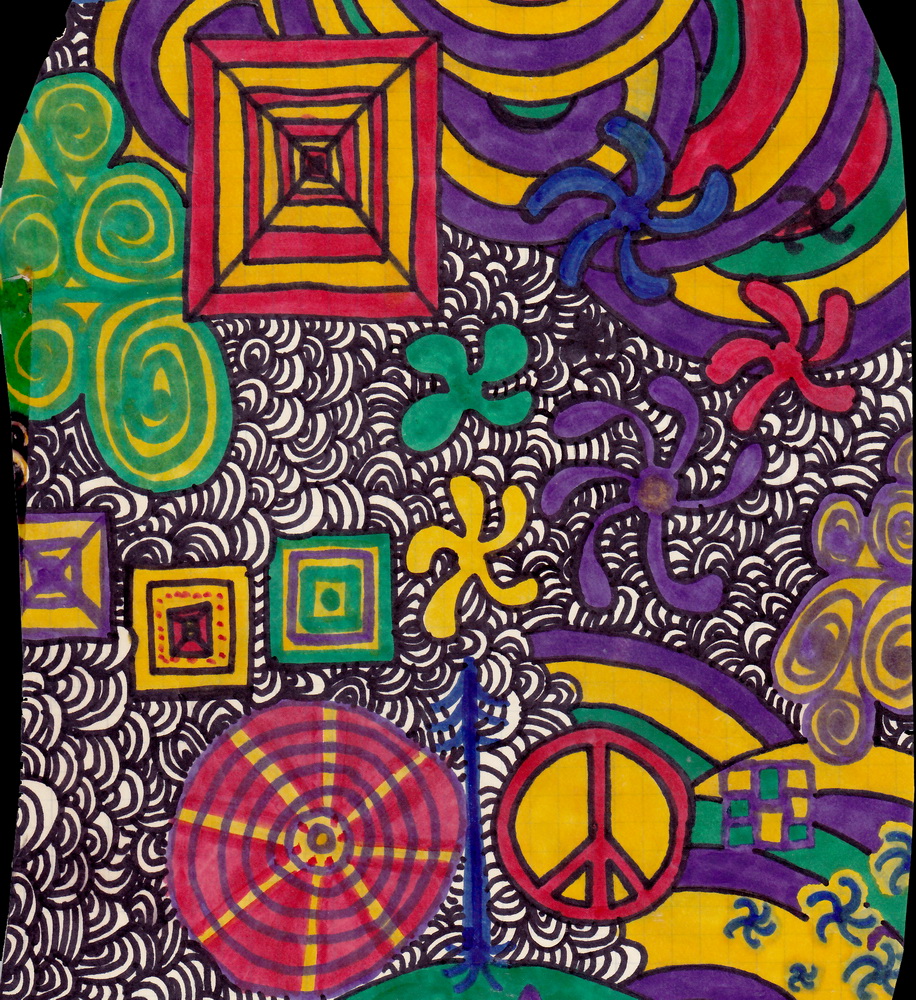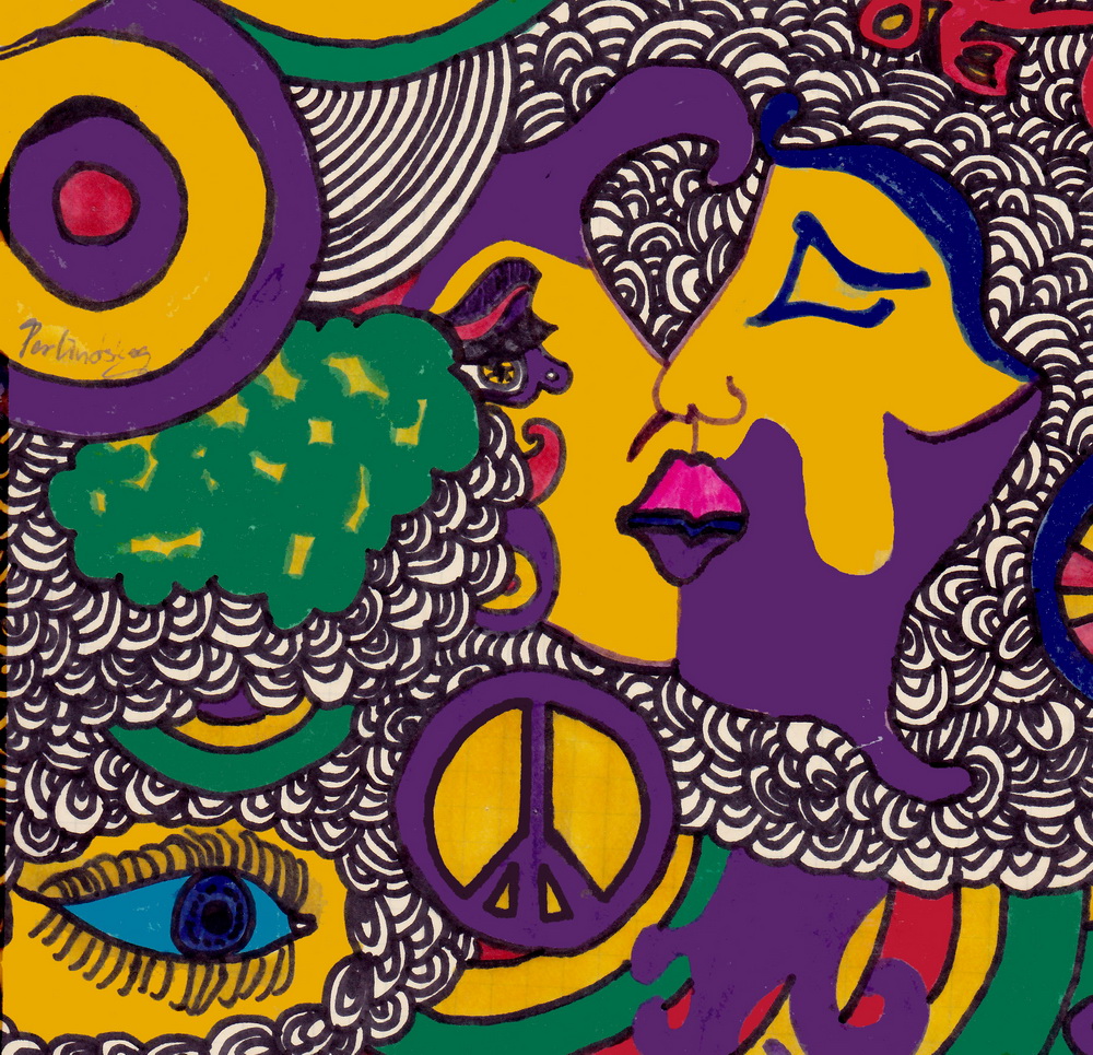 Tidigt 70-tal satt jag ofta och målade diverse flummiga teckningar i tusch. Från början var jag ganska inspirerad av den tecknade Beatles-filmen ”Yellow submarine”. Det var till och med så att någon undrade vad jag dragit i mig för drog när jag skapade. Sanningen är den att jag aldrig ens testat droger. Hade väl bara vild fantasi och en fäbless för starka färger.