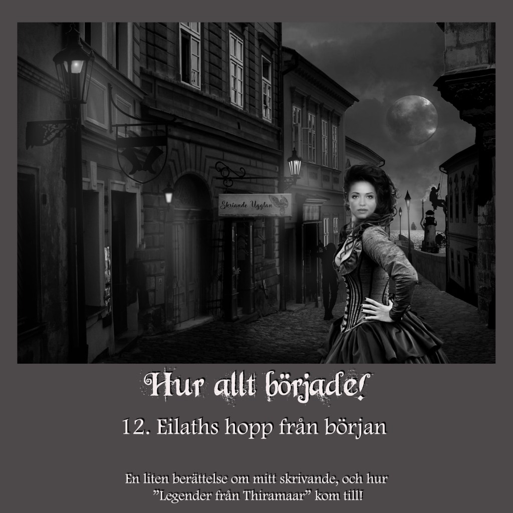 När jag första gången skrev de begynnande kapitlen av ”Eilaths hopp” i datorn, efter en grundidé från min dåvarande skrivarkompis, såg berättelsen ganska annorlunda ut. Första kapitlet handlade om hur Eilath gjorde sig redo för en festlig kväll på stamstället ”Skriande Ugglan”, och var egentligen ganska långt. Därpå följde själva besöket på stället och hur han hamnade i kortspel med den onde Moriander.