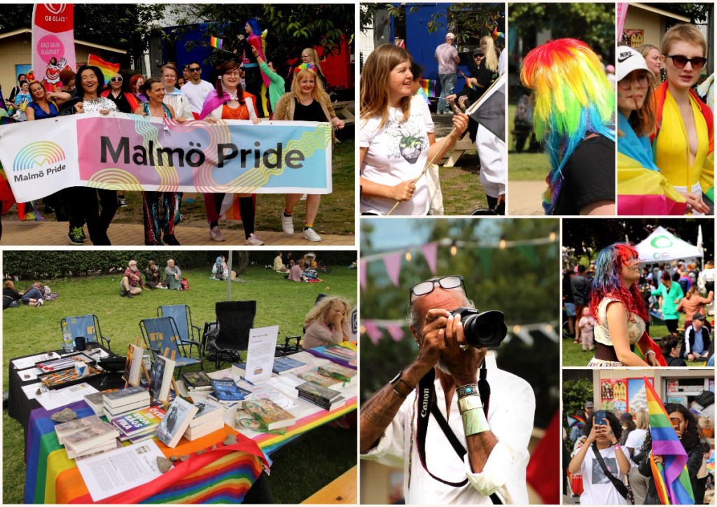 Idag var det dags för dag två i Folkets Park. Inför dagen hade vi bestämt oss för att inte satsa lika optimistiskt som igår. Då hade vi två fulla väskor med böcker när vi kom till parken. Samma sak gällde när vi körde hem. Så idag valde vi att låta en väska ligga kvar i bilen. Men fram på eftermiddagen fick jag gå och hämta den, och när vi packade ner böckerna efter dagens försäljning, rymdes samtliga böcker i den ena väskan! Så det här har varit en bra dag. Och precis som igår har vi träffat en mängd trevliga människor, och stortrivts bland regnbågens alla färger. Nu ser vi fram emot en upprepning inför nästa år, då vi förhoppningsvis kan presentera del två i sviten Det hände i Skärsjön, och troligen även mina memoarer.