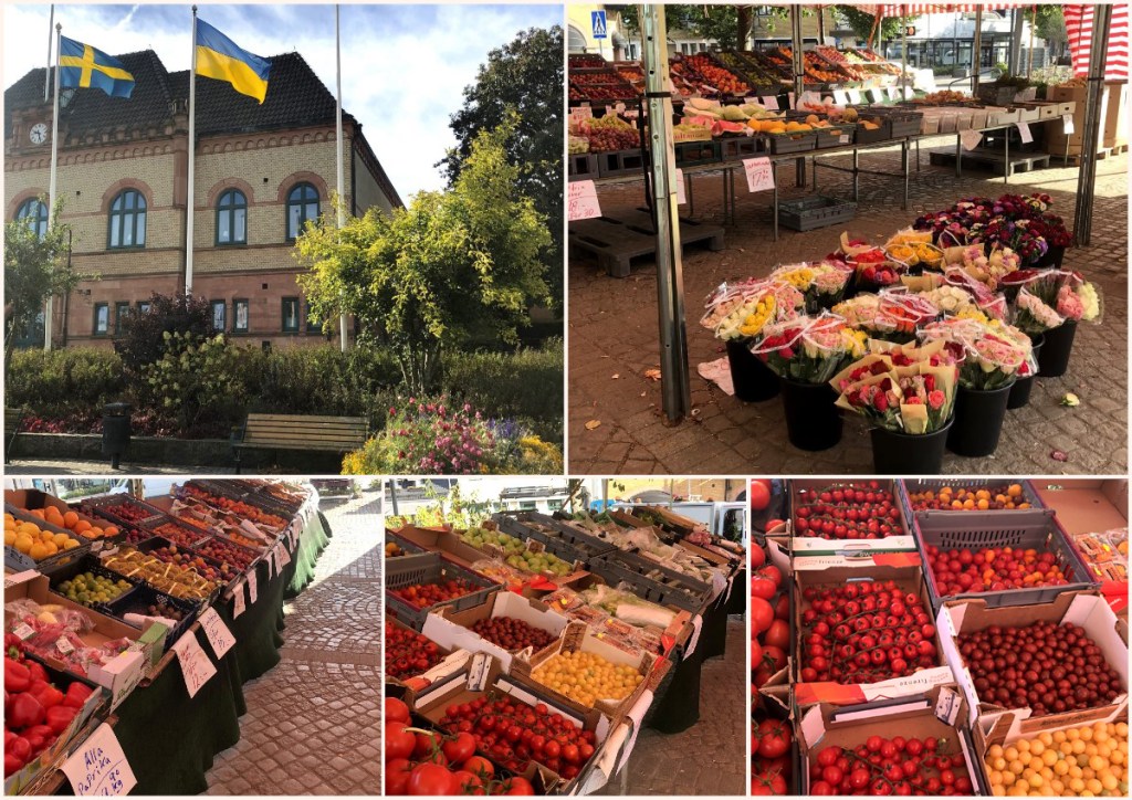 Under mina trettiosex år som invånare i den här kommunen har jag förvisso ofta noterat torghandeln framför kommunhuset när jag har kört förbi. Men jag har aldrig ens tänkt tanken att stanna till och handla där. Har absolut ingen aning om varför. Men när vi var på biblioteket i förra veckan och gjorde vad vi kan för att hjälpa till att förhindra Sveriges Dumhuvuden att få regeringsmakt, passade vi även på att handla lite grönsaker. Bestämde oss också direkt för att det här definitivt ska bli en vana!
