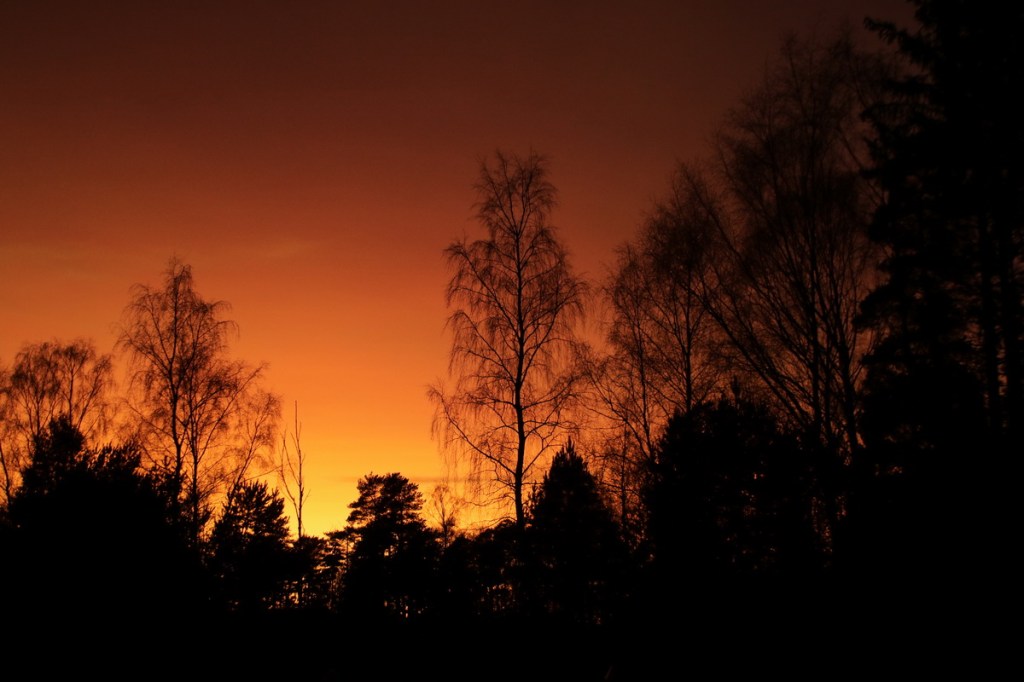 Förutom att vårt stora förändringsprojekt i vårt hem under januari månad, gav oss ett synnerligen trivsamt arbetsrum, har det även andra positiva effekter. Nu sitter vi så att vi kan se kvällshimlen varje dag. Just i dag såg det nästan ut som om en storbrand rasade i grannskapet. En brinnande himmel som faktiskt ger lite förnimmelse om den sköna våren som trots allt närmar sig.