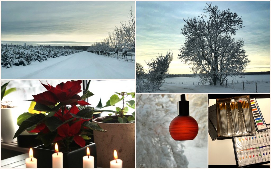 Tog en tur i vinterlandskapet in till Sjöbo för att handla lite förnödenheter. Dessutom en sväng till Dollarstore för att där inhandla lite konstnärsmaterial. Har på sistone fått lite inspiration att försöka återuppta min tecknar- och målarambition. Det är väldigt många år sedan jag var kreativ på den fronten, och egentligen är det synd. Om jag nu är kapabel att åstadkomma något vettigt, återstår klart att se. Men inspirationen finns, liksom ambitionen.
