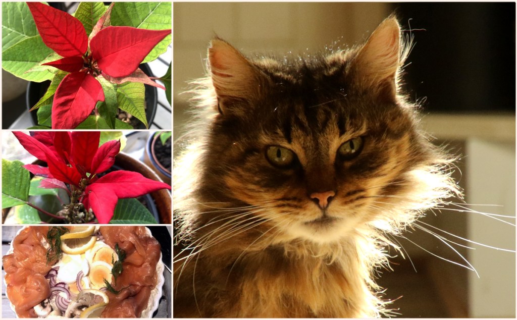 En lugn påskhelg, med traditionell matjestårta … eller nåt. I år snarare laxtårta, men oavsett vilket är det förbaskat gott. Och så här lagom till påsk har julstjärnorna en efter en fått fina röda blad! Två plantor har vi under den gångna höst-vintern ”särbehandlat” genom att ha dem i totalt mörker cirka tolv timmar per dygn, så som det föreskrivs om man vill ha röda blad på dem. Men det är de plantorna som hela tiden stått på sin vanliga plats i uterummet som har fått flest röda blad! Och visst, det är ju logiskt! Vinterhalvåret är det ju mörkt sådär halva dygnet!