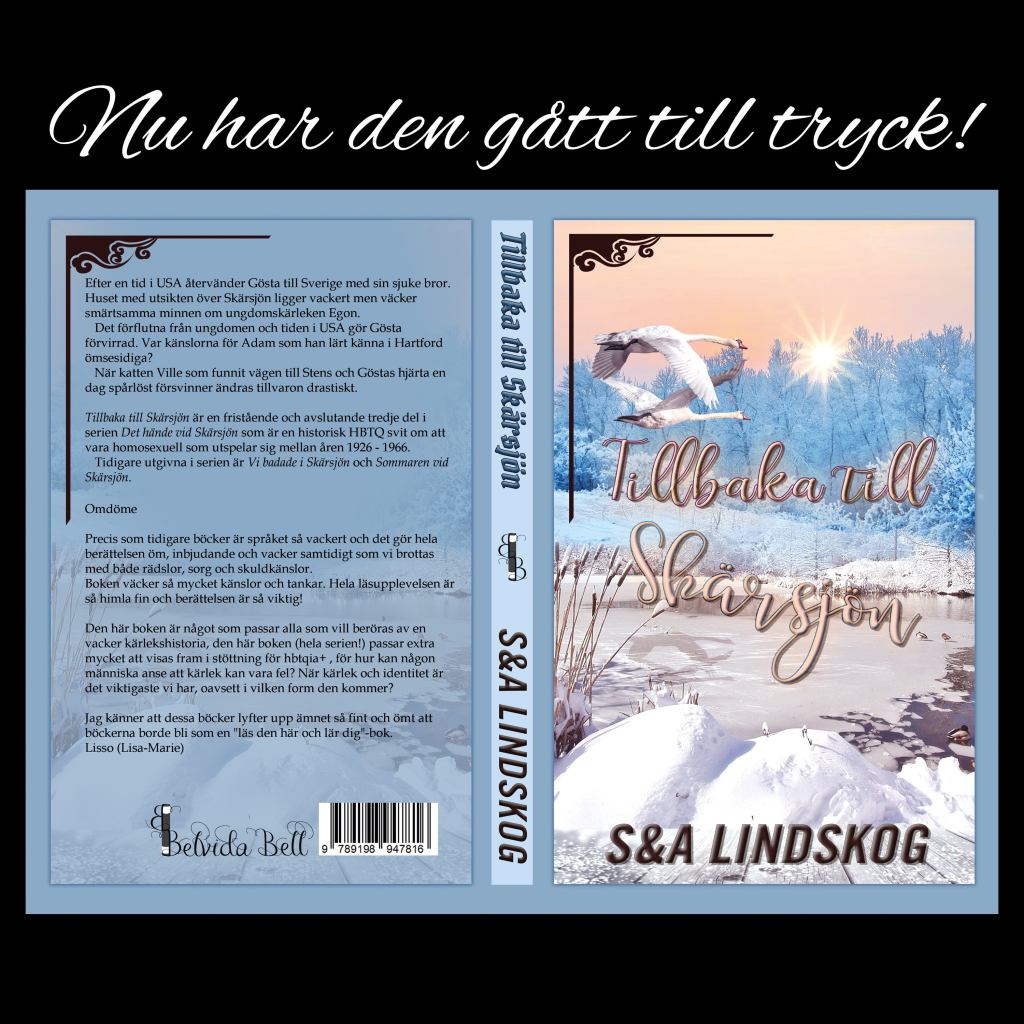 Idag kom Tillbaka till Skärsjön – tredje och avslutande delen i sviten Det hände vid Skärsjön, från tryckeriet. I tid inför den kommande helgens Litteraturrunda. Alltid lika spännande och inspirerande att få packa upp och få se sina egna böcker i tryck.