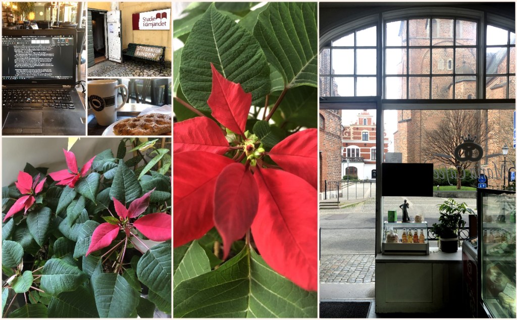 Med årets litteraturrunda avklarad, med försäljningsmässigt klent resultat, men så mycket bättre resultat i sociala kontakter, började vi veckan med ett trevligt möte med en kär vän på Maria Caféet i Ystad. Även tisdagen blev det ett möte i Ystad, men den gången i syfte att eventuellt hitta något enklare extraarbete. Kvällen var det dags igen för medlemsmöte med fotoklubben, som bland annat innehöll en del intressanta diskussioner om AI-bilder. Som väntat var det allmän oförståelse inför mitt val av bild till månadstävlingen med tema PÅSK – en samling rödblommande julstjärnor dekorerad med lite påskfjädrar. Vi skulle ju ha en bild tagen runt påsk – jag kan inte hjälpa att våra julstjärnor fått röda blad lagom till påsk! Onsdagen hade jag bokad tid på Lasermottagningen i Malmö, och valde att ta det säkra före det osäkra, med tanke på befarad Eurovisionröra i stan. Körde in ett par timmar i förväg och tog mig en fika och skrivstund på Coffeehouse. Torsdagen inleddes med full pott i bokförsäljning! En granne köpte alla Thiramaar-böckerna. Alltså även de sex novellerna. Så var det ju det där med bank-ID som var ur funktion i närmare en timme under fredagen, vilket gav mig anledning att ifrågasätta hur bankerna tänker. Egentligen! När jag blev varse att bank-ID hade upphört att fungera, hade de inte hunnit gå ut med information. Så jag försökte ringa banken i tron att det var mitt ID som upphört fungera. Men för att ens få fram telefonnummer till bankens kundservice, behövs bank-ID. Hittade dock ett telenummer till bankens support … där jag behövde logga in med mitt bank-ID! Suck!