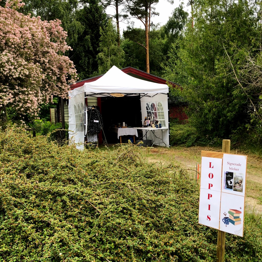 Idag var det dags att upprepa eventet från förra året, då det arrangerades samordnad garageloppis i vårt bostadsområde. På Radio Malmöhus hotade de igår med att det skulle vara regnskurar mer eller mindre hela dagen. Men det klarade vi oss faktiskt helt ifrån. Egentligen har vi efter ett antal loppisar sålt ut det mesta som är av intresse, vilket syntes ganska tydligt idag. Det blev sålt några cd-skivor och några små enkla prydnadsfigurer. Men det som gav förtjänst idag var nästan helt och hållet våra egna signerade böcker. Jag vet, inte direkt loppisprylar, men har man försäljning kan man ju lika gärna passa på med det också. Och det lönar sig bevisligen!