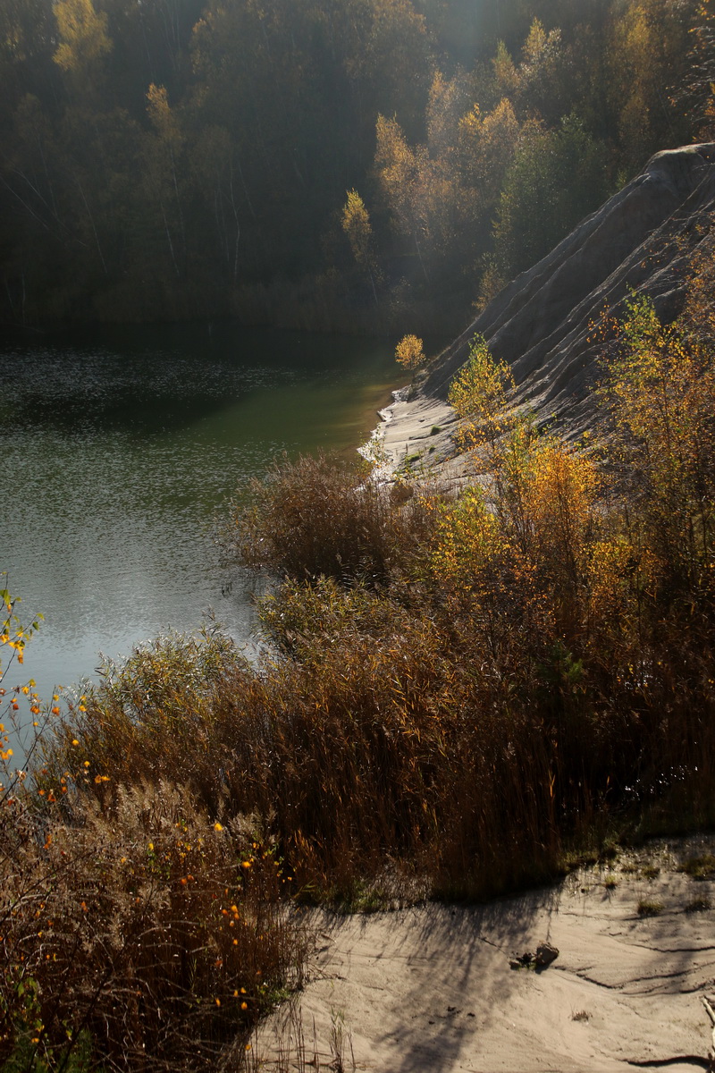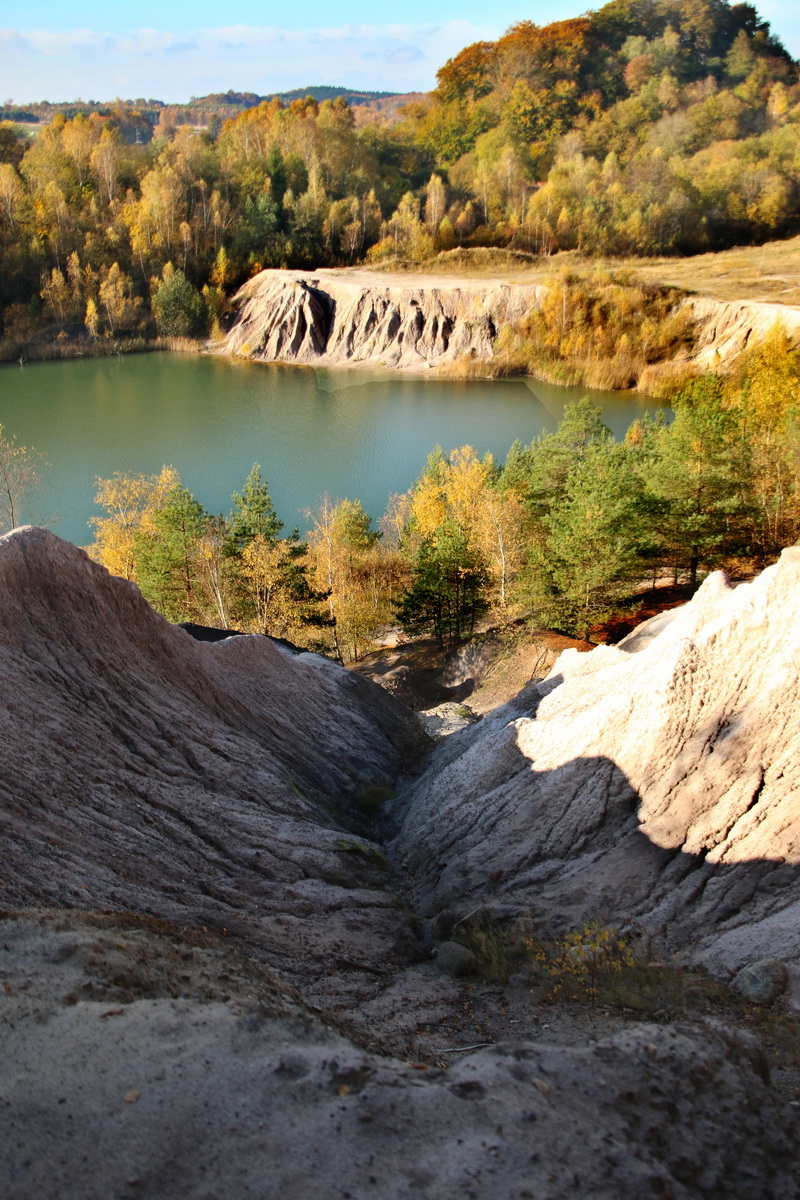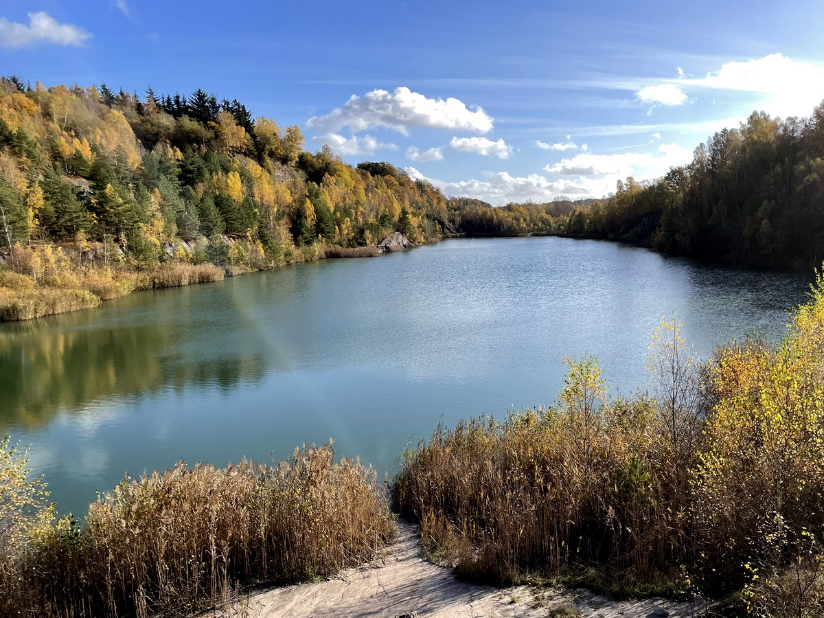 Eftersom eftermiddagen erbjöd soligt och milt höstväder, valde vi lite spontant att göra en utflykt med medhavd fika till Fyleverket i Eriksdal. Det blev därmed andra besöket där på kort tid för min del. Var ju där i söndags med fotoklubben. Det är ett fascinerande och naturskönt område. Inte minst är den gamla förfallna gården uppe på höjden spännande. Trampar omkring medan det skissas upp fantasifulla bilder i huvudet om hur det kan ha sett ut. Många frågor – varför har det lämnats åt sitt öde? När lämnades det? Hur såg det ut under sin glans dagar? Idag är det svårt att föreställa sig den miljöfarliga industrin som bedrivits här, när man vandrar längs branterna med utsikt över den vackra sjön.