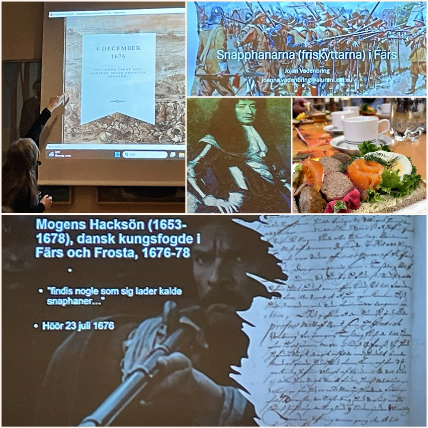 Vi var faktiskt i Svenska Kyrkans lokaler på Lilla Norregatan i Sjöbo på kvällen, och tog del av en föreläsning om friskyttar (snapphanar) i Skåne år 1676 – 1679, med lite extra fokus på Färs härad.