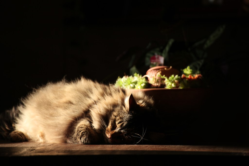 Temat i fotoklubbens månadstävling i mars, var Njutning. Bortskämt med en kärlek som dagligen serverar ljuvligt god mat, är jag frestad att välja bild på någon maträtt. Men jag inriktade mig på att välja bland mina katt- och hundbilder, och samlade ihop ett tiotal utvalda. Fastnade till slut för en bild av Mogwai, som njuter i solvärmen på vårt matbord. Få kan väl se så totalt avspända och njutningsfulla som katter.