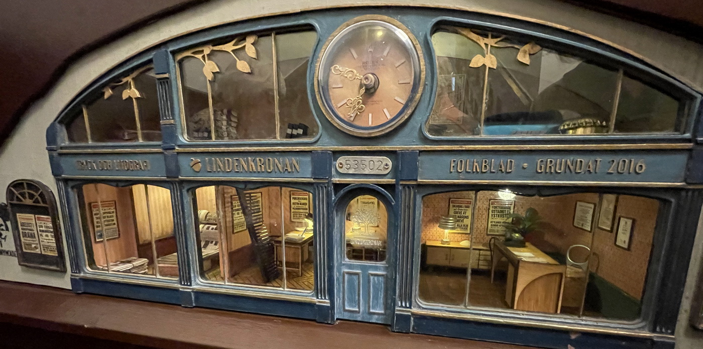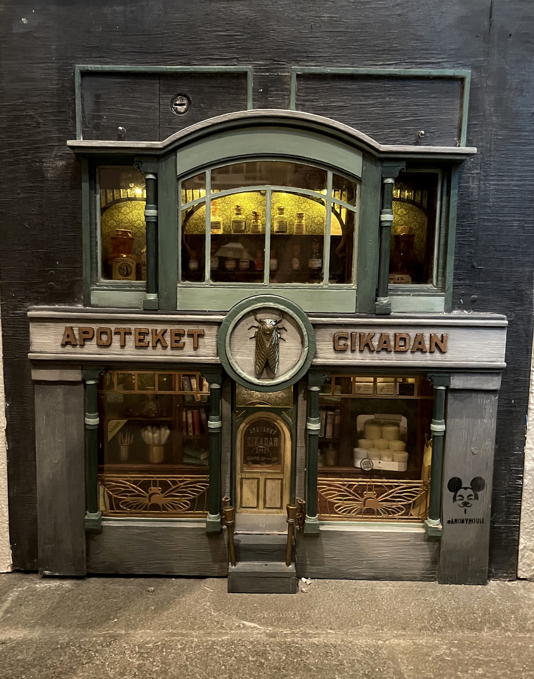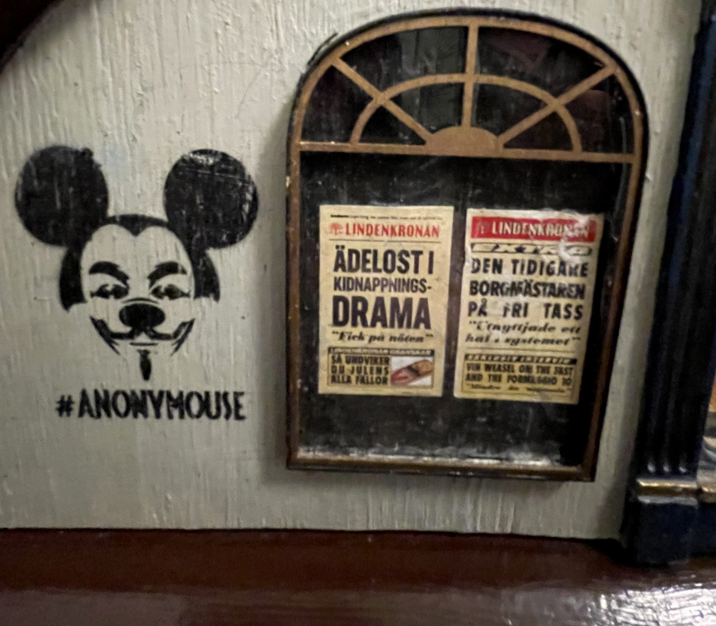 Bland allt intressant på Skissernas museum, var ändå den tillfälliga utställningen med de fantastiska skapelserna av konstnärerna Elin Westerholm och Lupus Nensén, som placerades ut anonymt under namnet Anonymouse på olika platser främst i Malmö. Det var under åren 2016 fram till 2025 som diverse butiker och andra verksamheter med särskild inriktning på möss och andra gnagare placerads lite här och var i Malmö. Även andra städer har haft nöjet att stå värdar för dessa fantasifulla konstverk!