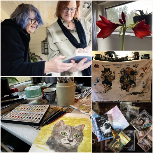 kom med storm och snö. Ett gammalt intresse vaknade till liv, och vi satt i uterummet och tecknade och målade medan vi lyssnade på ljudböcker.