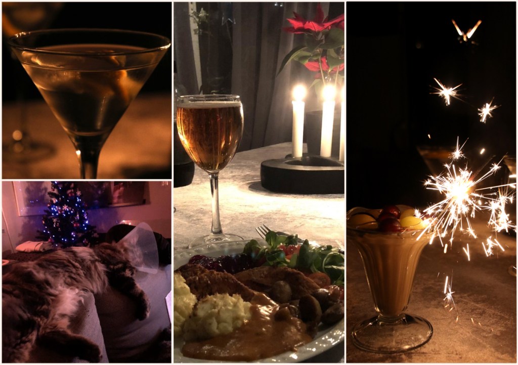 Vi hade en lugn och trivsam nyårsafton, med god mat och dessert. ”Hela familjen” samlade i soffan för kvällens filmmaraton, som vi brukar när vi firar nyår.