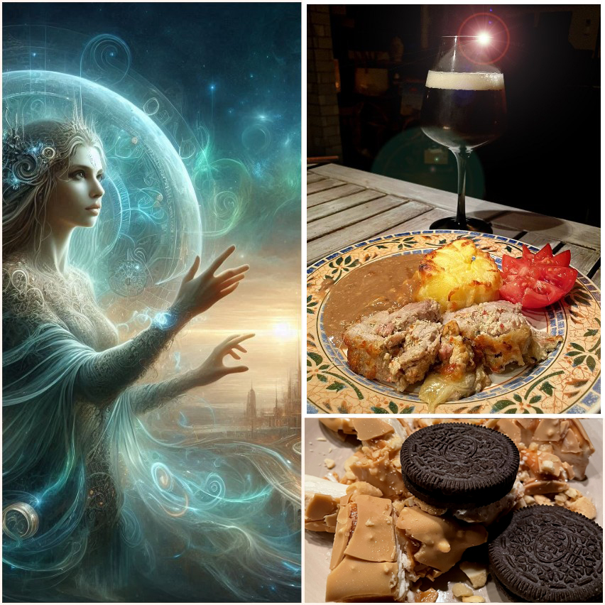 En för oss ganska traditionsenlig nyårsafton, med en dag som mest innehöll lite kreativa sysslor. Lite så är det ju mer eller mindre varje dag. Nyårsmenyn i år blev lite av en favorit i repris. Ångstekt kotlett med mozarella och cheesy potatisgratiner. Dessert glass gold caramel med nötblandning. Medan stormbyarna stökade runt utanför huset, satt vi i soffan med en sprakande brasa i kaminen och vårt egna filmmaraton som pågick några timmar in på det nya året, precis som vanligt! Ännu ett år har därmed inletts, och det är vårt fjortonde år tillsammans.