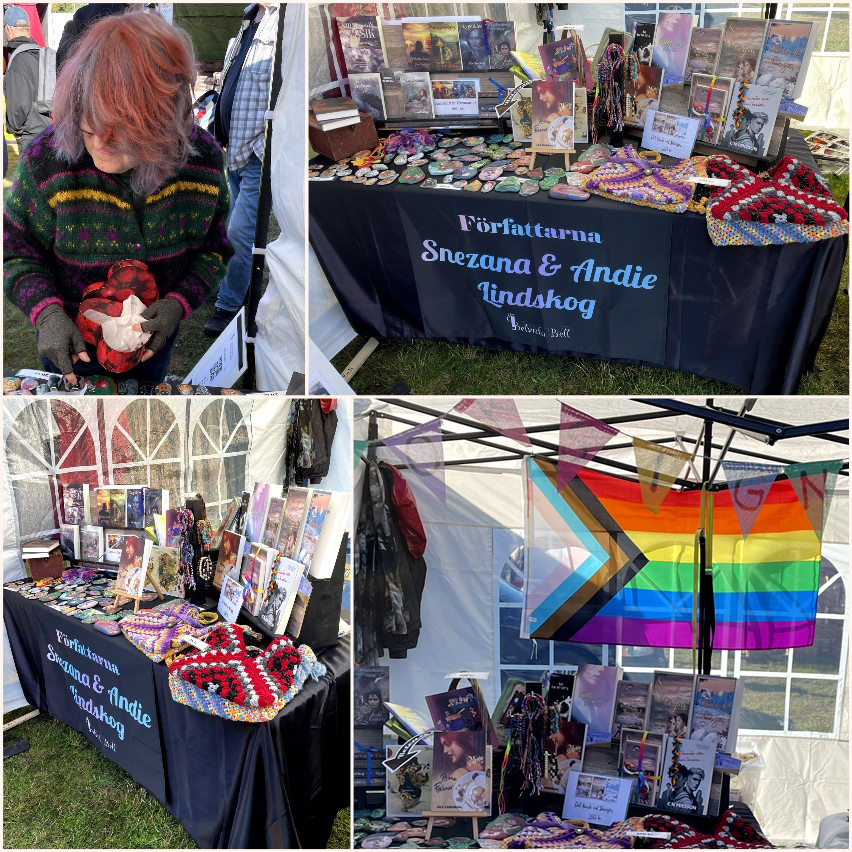 Kort och gott kan vi konstatera att dag ett på Sjöbo Mikaeli marknad varit riktigt givande! Vi har faktiskt under denna dag sålt för mer än vi gjorde under båda dagarna i oktober 2023. Men förutom en positiv försäljningsstatistik har marknaden också inneburit flera trevliga, intressanta och kära möten, med många fina vänner. Och så gläder vi oss alldeles extra åt att vi fått flera ”stamkunder”. Människor som gillar våra skrivna ord, och gärna återkommer och köper mer av oss. Det är sånt som värmer långt in i skrivarsjälen!
