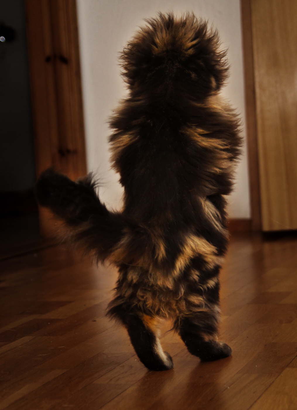 Det har tagit ganska lång tid, men efterhand har Mogwai blivit allt mer social. Numera när han går ut på kvällarna, finns det ett slags ritual då han med jämna mellanrum kommer in, och med hela sitt kroppsspråk tydligt berättar vad han vill. Ibland vill han ha lite mat. Ibland är han törstig och vill att jag ska gå med honom till badrummet och öppna vattenkranen så han kan dricka. Men ibland står han kvar alldeles bredvid mig, och då vill han att jag lyfter upp honom över min axel för en kelstund. I övrigt har han ett lite försynt sätt att visa sin tillgivenhet. Han ligger gärna på armstödet till soffan när vi sitter där och tittar på någon film. Ganska ofta kommer han in i sovrummet och ligger vid fotänden i sängen och sover tillsammans med oss. Vid några få tillfällen har jag kunnat lyfta upp honom i sängen och haft honom intill mig i sängen där han spinnande låtit mig klappa honom en stund, innan han valt att avvika. Men i går morse kom han faktiskt självmant och la sig spinnande intill mig i sängen, och låg där en stund medan jag klappade honom. Han kom in som hittekatt, cirka tolv veckor gammal, för drygt elva år sedan. Jag har alltid låtit honom själv bestämma hur mycket närkontakt vi ska ha. Har genom hela mitt liv och genom lång erfarenhet med olika katter, lärt mig att det är avgörande att man alltid låter katten själv avgöra hur social man ska vara. I slutänden betalar det sig alltid, även om det i vissa fall tar ovanligt lång tid.