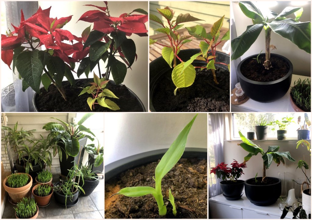 Under eftermiddagen blev det ett länge emotsett återseende. Tiden går fort, men med åren rör vi oss kanske inte fullt lika fort själva. Så då får man försöka hålla in tiden lite och bara sitta ner och fika och samtala en stund. För övrigt konstaterar vi att vi numera tycks vara ”självförsörjande” även på bananplantor. En banan jag planterade om i slutet av augusti, hade redan blivit för stor och behövde ny kruka. Och just nu är vår trädgård en ovanligt färgstark palett, och Mogwai trivs i fokus.