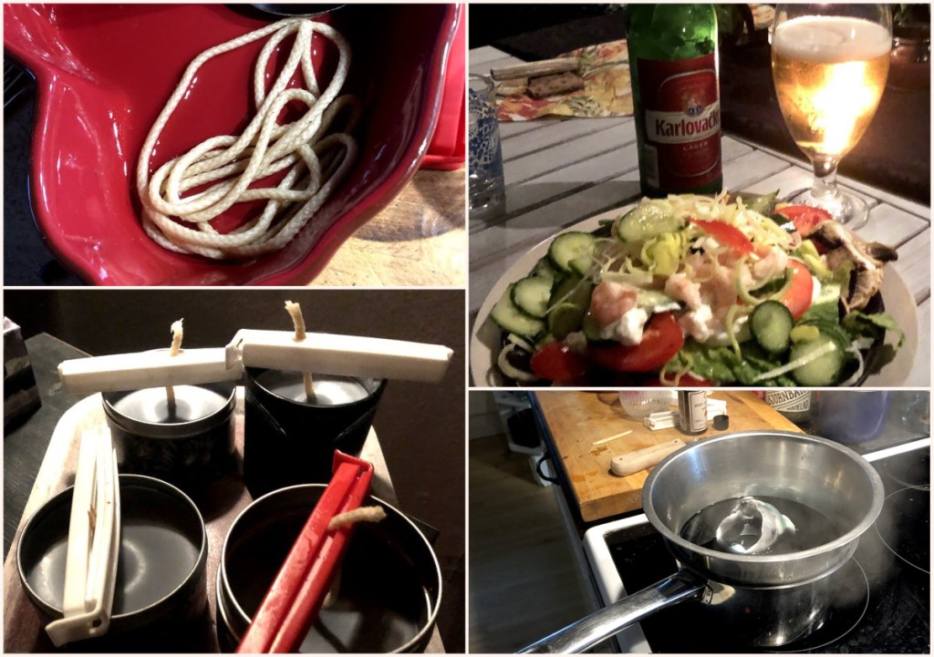 Gråa och trista november är här. Enligt mitt tycke årets tristaste månad. Så man får anstränga sig lite extra för att få lite guldkant även dessa dagar. Så vi satsar helhjärtat på ett deltagande i Na-No-Wri-Mo och kommer förhoppningsvis en bit på vägen med aktuellt bokmanus. Kan kanske behövas för att komma över en torftig och egentligen allt för sen recension för min tredje del av Legender från Thiramaar. Denna Alla Helgons dag, har annars ägnats åt att komplettera ljudisoleringen i vår studio. Kunde också glädjas åt att senaste el-räkningen är tusen kronor lägre än föregående månad, och samtidigt konstaterar vi att vi hela det här året har varit duktiga på att spara el. Ett sätt är att använda oss av värmeljus, doftljus och vanliga stearinljus, som dels lyser upp på ett hemtrevligt vis, och dels bidrar till uppvärmningen. Därmed kan vi också hålla ner den elektrifierade uppvärmningen. Idag passade vi även på att stöpa egna doftljus av gammal stearin. Ett välgörande SPA-bad med nya kreativa idéer blev det också, och kvällens middag blev underbara hemmagjorda räkmackor. Bara för att vi kan.